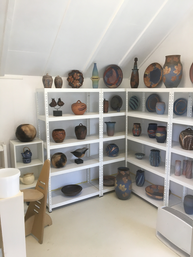 In de pottery heb ik een expositie van mijn werk ingericht. Hier staat werk dat ik in de loop van de jaren heb gemaakt. Ik maak gebruik van verschillende stook-technieken: